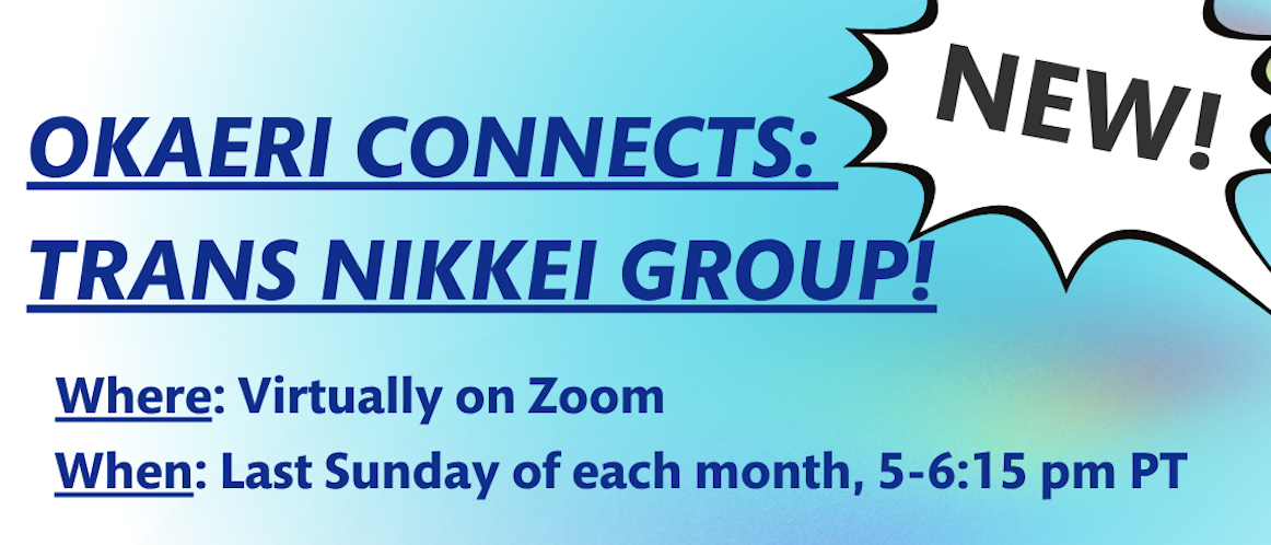 In 2013, Marsha Aizumi, the mother of a transgender son, wondered why there were no resources for Japanese American (Nikkei) LGBTQ+ individuals. In 2014 she brought together a group of LGBTQ+ Nikkei, parents, and allies to organize Okaeri: A Nikkei LGBTQ Gathering, the first-ever conference focused on LGBTQ+ Japanese Americans. Since then, Okaeri has continued to offer inclusive, culturally-based programs to the Nikkei community, as too many LGBTQ+ Nikkei are still estranged from their families and communities.