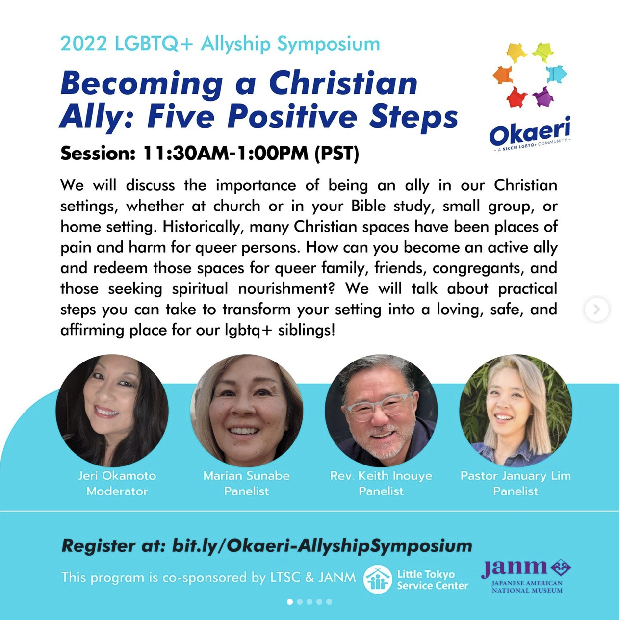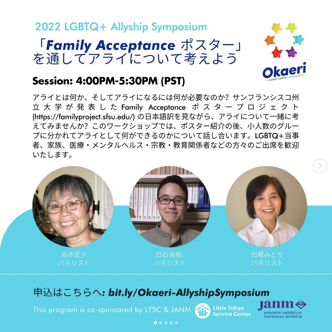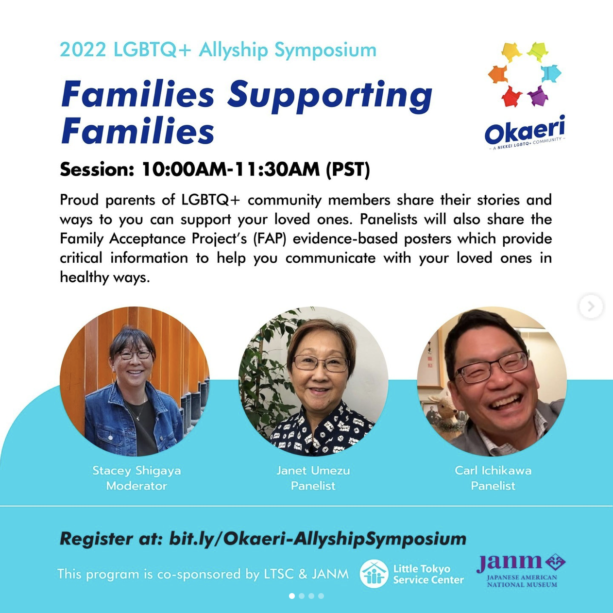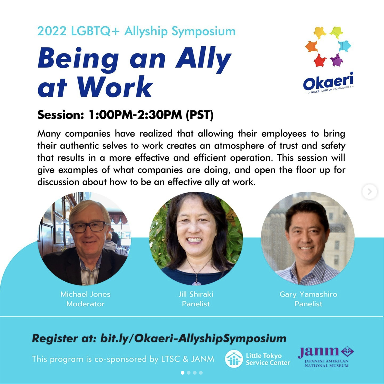 Our 2024 Symposium, Trans Allyship: Learn, Grow, Act was a joint effort by Okaeri, the Japanese American Citizens League (JACL), and PFLAG San Gabriel Valley API. This effort grew from the realization that the transgender community, and its Japanese American and API members, are largely invisible and misunderstood both in LGBTQ+ spaces and especially among allies.