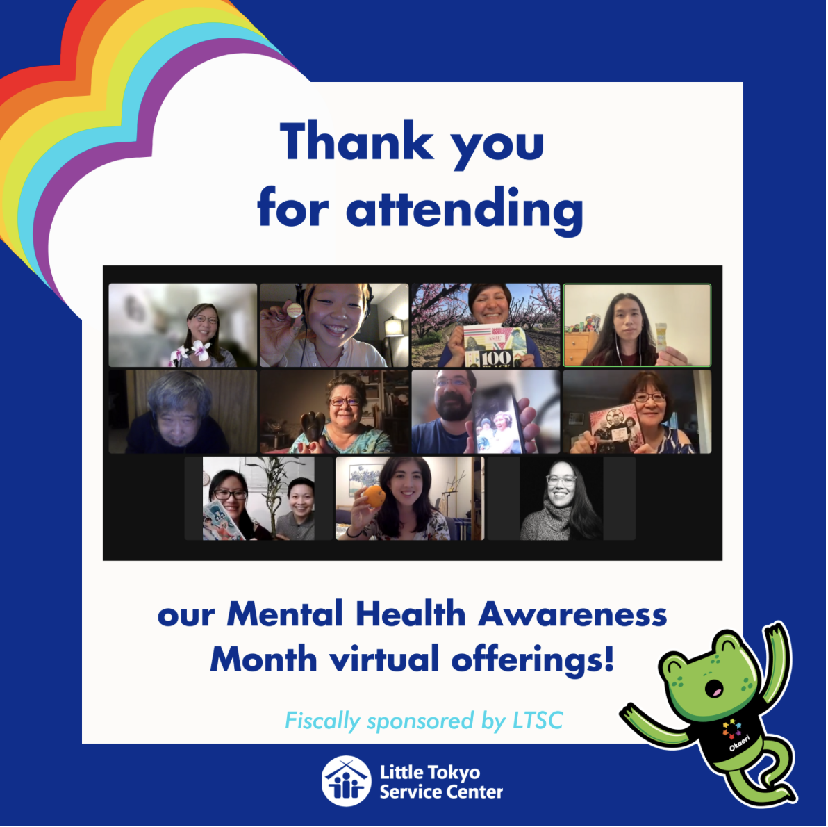 In May 2022, Okaeri staff Cody Uyeda and Rino Kodama led a Mental Health Awareness Month Workshop Series consisting of three workshops: “Objects & Stories of Well-Being” with Nikiko Masumoto, “Creating Care Teams” with Audrey Kuo, and “Navigating With(Out) Instruments: A Reading and Conversation on Queer Intersections, Creative Mapping, and Mental Health” with traci kato-kiriyama. The goal of this programming was to reduce the stigma surrounding mental health, share resources, and offer a virtual space to be vulnerable and speak truth to our experiences with mental health struggles.
